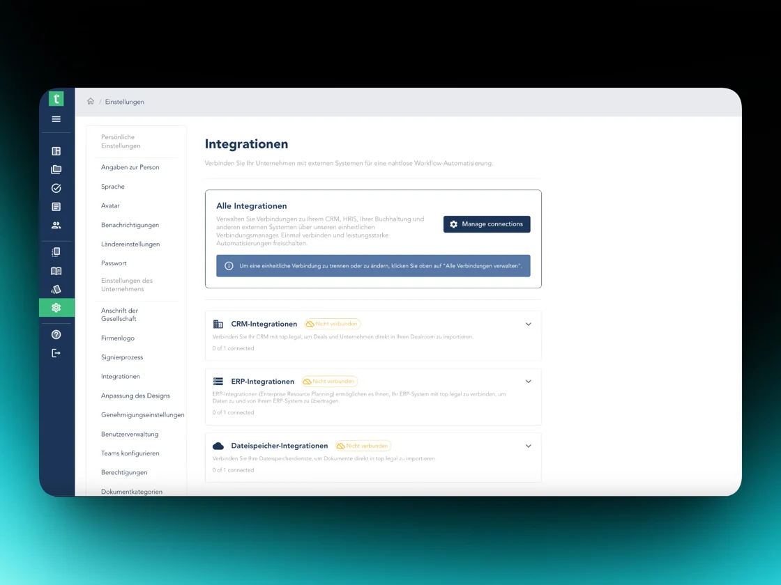- Dealrooms und zugehörige Dateien können automatisiert erstellt werden