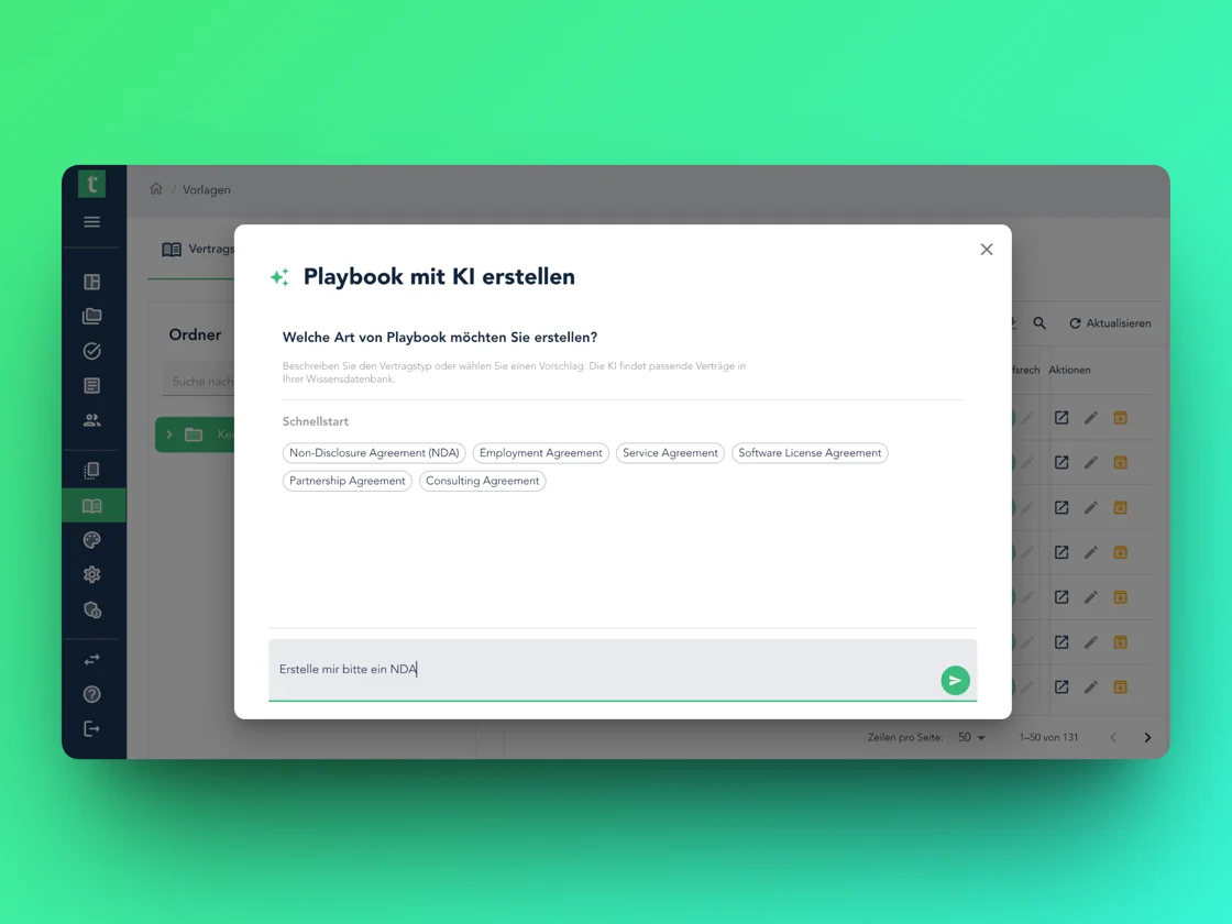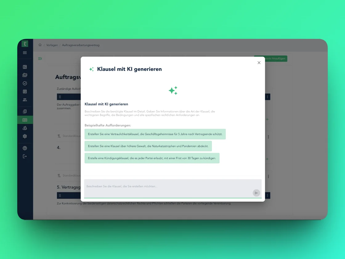 Ergänzend steht Ihnen ein neuer KI-Editor zur Verfügung. Sie beschreiben, welche Informationen Sie aus Verträgen analysieren möchten – die KI unterstützt Sie beim Aufbau der passenden Extraktionslogik.