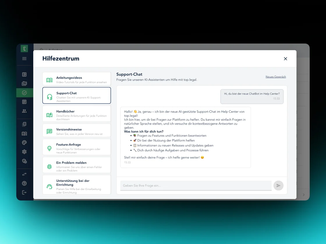 Das Help Center wurde grundlegend erweitert und enthält jetzt einen integrierten Chatbot, der direkt auf unsere gesamte Dokumentation zugreift und bei Fragen zur Plattform schnell weiterhilft. Neu: Die Release Notes sind ab sofort öffentlich einsehbar – so bleiben Sie immer über aktuelle Updates informiert.