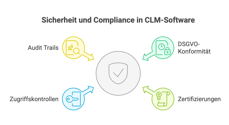 - Zugriffskontrollen & Audit Trails: Die Software sollte robuste Sicherheitsfunktionen mitbringen – von fein einstellbaren Zugriffskontrollen bis hin zu lückenlosen Audit Trails. Letztere protokollieren, wer was wann mit einem Vertrag getan hat. Das schafft Nachvollziehbarkeit und ist bei Audits oder Rechtsstreitigkeiten Gold wert. Moderne CLM-Lösungen bieten hier umfassende Möglichkeiten: Granulare Rechte, Protokolle jeder Änderung und Sicherstellung der Einhaltung von Vorschriften (etwa Branchenstandards oder der DSGVO) sind unverzichtbar. Sicherheit ist im Vertragsmanagement nicht verhandelbar – die richtige Software schützt Ihre vertraulichen Vertragsdaten vor Missbrauch und hilft, Compliance-Vorgaben einzuhalten.